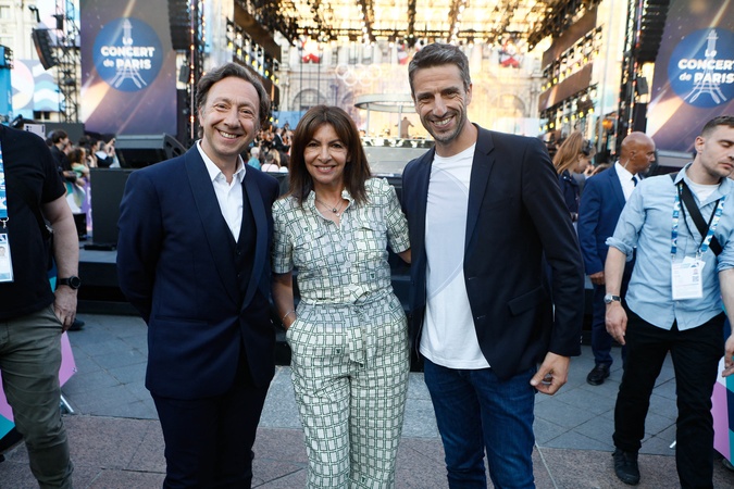 Exclusif - Stéphane Bern, Anne Hidalgo, Tony Estanguet - Backstage du "Concert de Paris" sur le parvis de l'hôtel de ville de Paris retransmis en direct sur France 2 et sur France Inter, Paris le 14 juillet 2024. © Christophe Clovis- Pierre Perusseau / Bestimage Exclusive - For Germany call for price - No Web For Belgium and Switzerland - Backstage of the "Concert de Paris" on the forecourt of Paris City Hall broadcast live on France 2 and France Inter, Paris on July 14, 2024.