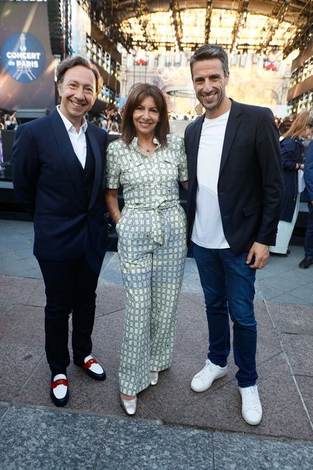 Exclusif - Stéphane Bern, Anne Hidalgo, Tony Estanguet - Backstage du "Concert de Paris" sur le parvis de l'hôtel de ville de Paris retransmis en direct sur France 2 et sur France Inter, Paris le 14 juillet 2024. © Christophe Clovis- Pierre Perusseau / Bestimage Exclusive - For Germany call for price - No Web For Belgium and Switzerland - Backstage of the "Concert de Paris" on the forecourt of Paris City Hall broadcast live on France 2 and France Inter, Paris on July 14, 2024.