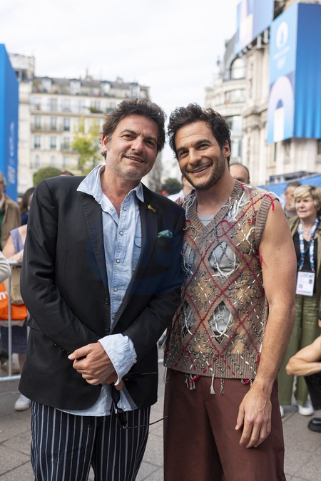 Exclusif - M (Matthieu Chedid) et Amir - Backstage du "Concert de Paris" sur le parvis de l'hôtel de ville de Paris retransmis en direct sur France 2 et sur France Inter, Paris le 14 juillet 2024. © Christophe Clovis- Pierre Perusseau / Bestimage Exclusive - For Germany call for price - No Web For Belgium and Switzerland - Backstage of the "Concert de Paris" on the forecourt of Paris City Hall broadcast live on France 2 and France Inter, Paris on July 14, 2024.