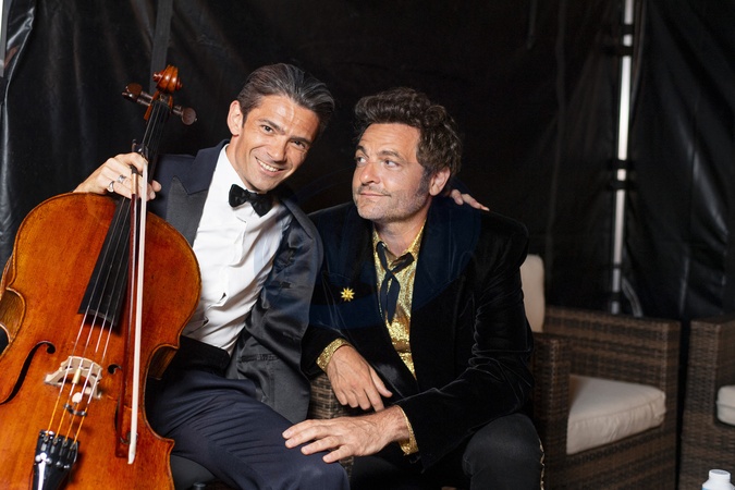 Exclusif - Gautier Capuçon et M (Matthieu Chedid) - Backstage du "Concert de Paris" sur le parvis de l'hôtel de ville de Paris retransmis en direct sur France 2 et sur France Inter, Paris le 14 juillet 2024. © Christophe Clovis- Pierre Perusseau / Bestimage Exclusive - For Germany call for price - No Web For Belgium and Switzerland - Backstage of the "Concert de Paris" on the forecourt of Paris City Hall broadcast live on France 2 and France Inter, Paris on July 14, 2024.