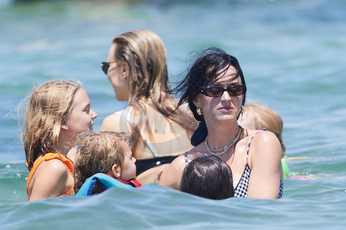 Katy Perry, jej narzeczony Orlando Bloom, ich córka Daisy Dove, syn Orlando Flynn Christopher i przyjaciele przybywają do Club 55 w Saint-Tropez
