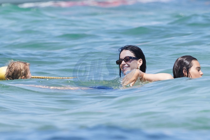 Katy Perry, jej narzeczony Orlando Bloom, ich córka Daisy Dove, syn Orlando Flynn Christopher i przyjaciele przybywają do Club 55 w Saint-Tropez