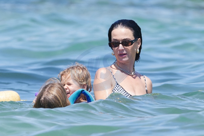 Katy Perry, son fiancé Orlando Bloom, leur fille Daisy Dove, le fils d'Orlando, Flynn Christopher et des amis arrivent au Club 55 à Saint-Tropez, Côte d'Azur, France, le 15 juillet 2024. Merci de flouter le visage des enfants avant publication Katy Perry, her fiancé Orlando Bloom, their daughter Daisy Dove, Orlando's son Flynn Christopher and friends arrive at Le Club 55 in Saint-Tropez, French Riviera, France, on July 15, 2024.