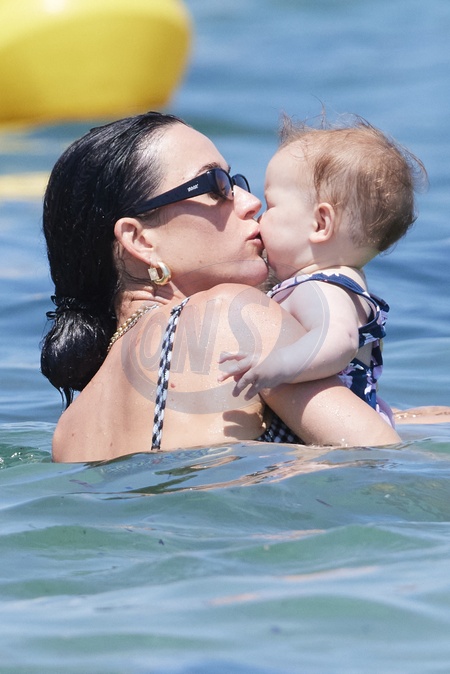 Katy Perry, jej narzeczony Orlando Bloom, ich córka Daisy Dove, syn Orlando Flynn Christopher i przyjaciele przybywają do Club 55 w Saint-Tropez