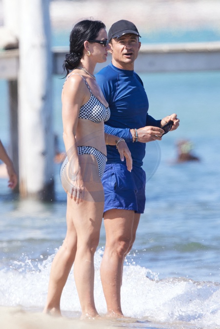Katy Perry, jej narzeczony Orlando Bloom, ich córka Daisy Dove, syn Orlando Flynn Christopher i przyjaciele przybywają do Club 55 w Saint-Tropez