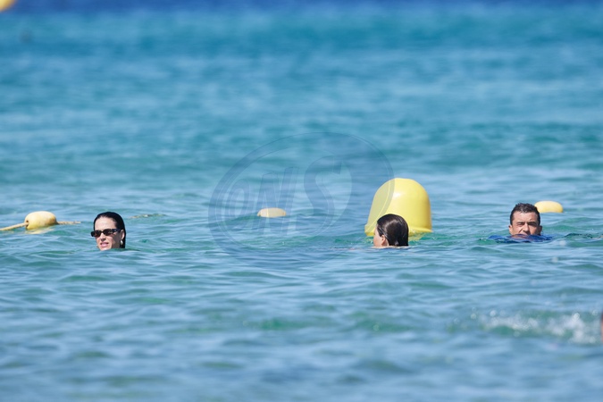 Katy Perry, jej narzeczony Orlando Bloom, ich córka Daisy Dove, syn Orlando Flynn Christopher i przyjaciele przybywają do Club 55 w Saint-Tropez
