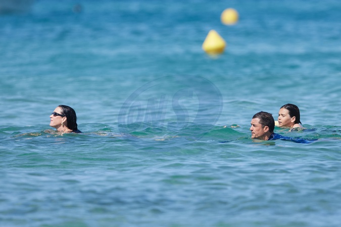 Katy Perry, jej narzeczony Orlando Bloom, ich córka Daisy Dove, syn Orlando Flynn Christopher i przyjaciele przybywają do Club 55 w Saint-Tropez