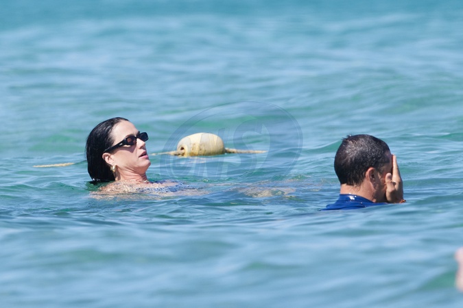 Katy Perry, jej narzeczony Orlando Bloom, ich córka Daisy Dove, syn Orlando Flynn Christopher i przyjaciele przybywają do Club 55 w Saint-Tropez