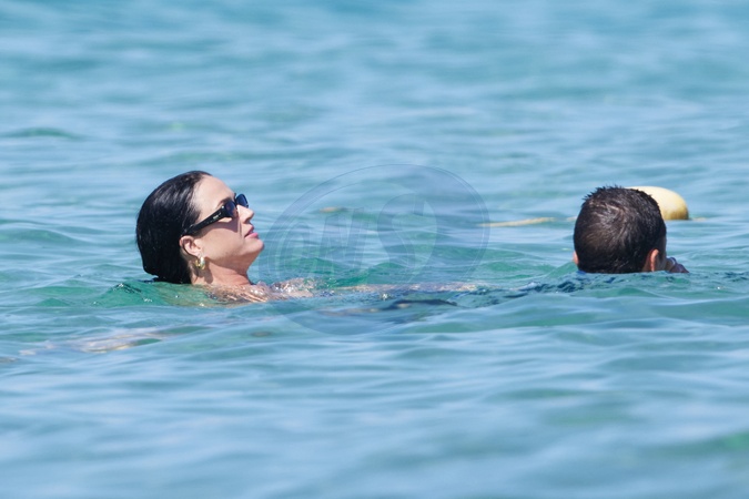 Katy Perry, jej narzeczony Orlando Bloom, ich córka Daisy Dove, syn Orlando Flynn Christopher i przyjaciele przybywają do Club 55 w Saint-Tropez