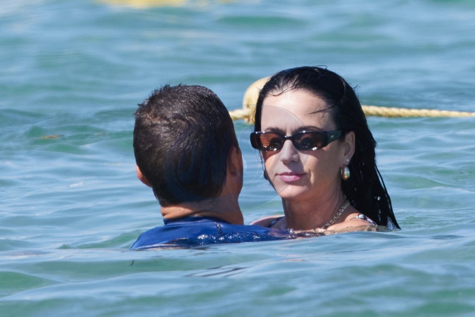 Katy Perry, jej narzeczony Orlando Bloom, ich córka Daisy Dove, syn Orlando Flynn Christopher i przyjaciele przybywają do Club 55 w Saint-Tropez