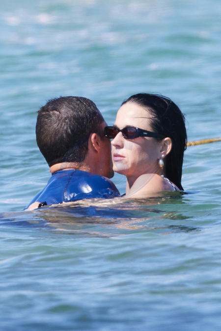 Katy Perry, jej narzeczony Orlando Bloom, ich córka Daisy Dove, syn Orlando Flynn Christopher i przyjaciele przybywają do Club 55 w Saint-Tropez