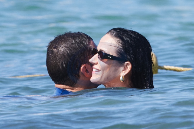 Katy Perry, jej narzeczony Orlando Bloom, ich córka Daisy Dove, syn Orlando Flynn Christopher i przyjaciele przybywają do Club 55 w Saint-Tropez