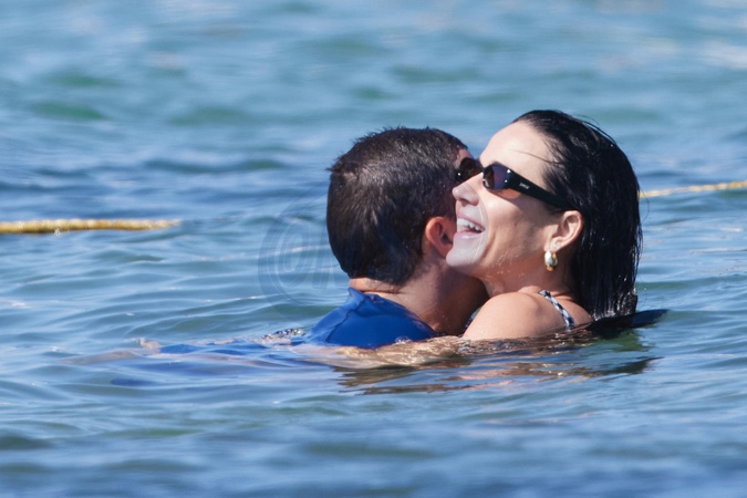 Katy Perry, jej narzeczony Orlando Bloom, ich córka Daisy Dove, syn Orlando Flynn Christopher i przyjaciele przybywają do Club 55 w Saint-Tropez