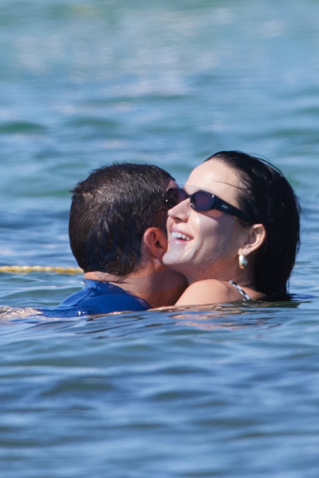 Katy Perry, jej narzeczony Orlando Bloom, ich córka Daisy Dove, syn Orlando Flynn Christopher i przyjaciele przybywają do Club 55 w Saint-Tropez