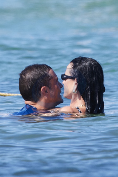 Katy Perry, jej narzeczony Orlando Bloom, ich córka Daisy Dove, syn Orlando Flynn Christopher i przyjaciele przybywają do Club 55 w Saint-Tropez