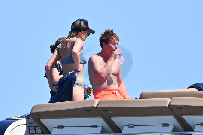Exclusif - James Blunt, sa femme Sofia Wellesley et des amis profitent d'une belle journée à bord du yacht "Belle Jour" dans le Golfe de Saint-Tropez, Côte d'Azur, France, le 15 juillet 2024. James a profité jusqu'à 19h avant son concert à Cannes ce soir. No Web pour la Belgique et la Suisse Exclusive - For Germany Call For Price - James Blunt, his wife Sofia Wellesley and friends enjoy a lovely day aboard the yacht 'Belle Jour' in the Gulf of Saint-Tropez, French Riviera, France on July 15, 2024. James enjoyed until 7 p.m. before his concert in Cannes this evening.