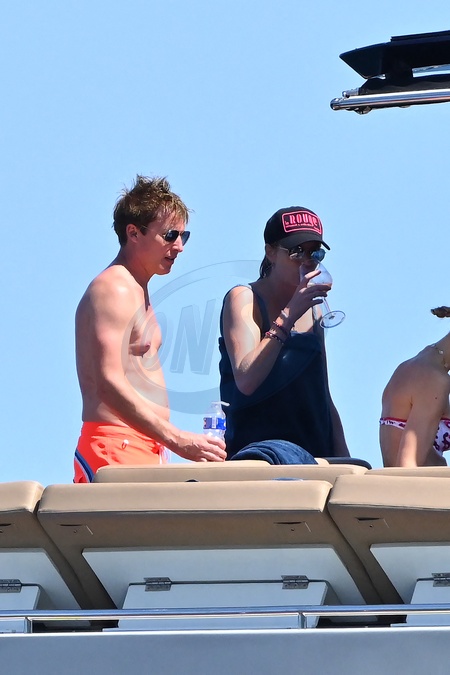 Exclusif - James Blunt, sa femme Sofia Wellesley et des amis profitent d'une belle journée à bord du yacht "Belle Jour" dans le Golfe de Saint-Tropez, Côte d'Azur, France, le 15 juillet 2024. James a profité jusqu'à 19h avant son concert à Cannes ce soir. No Web pour la Belgique et la Suisse Exclusive - For Germany Call For Price - James Blunt, his wife Sofia Wellesley and friends enjoy a lovely day aboard the yacht 'Belle Jour' in the Gulf of Saint-Tropez, French Riviera, France on July 15, 2024. James enjoyed until 7 p.m. before his concert in Cannes this evening.