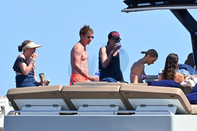 Exclusif - James Blunt, sa femme Sofia Wellesley et des amis profitent d'une belle journée à bord du yacht "Belle Jour" dans le Golfe de Saint-Tropez, Côte d'Azur, France, le 15 juillet 2024. James a profité jusqu'à 19h avant son concert à Cannes ce soir. No Web pour la Belgique et la Suisse Exclusive - For Germany Call For Price - James Blunt, his wife Sofia Wellesley and friends enjoy a lovely day aboard the yacht 'Belle Jour' in the Gulf of Saint-Tropez, French Riviera, France on July 15, 2024. James enjoyed until 7 p.m. before his concert in Cannes this evening.