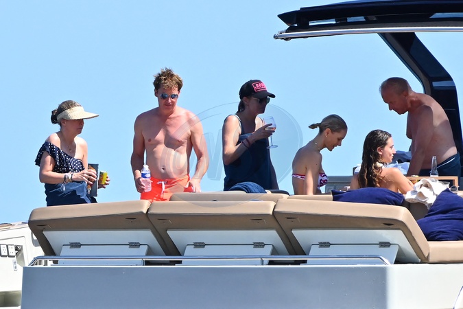 Exclusif - James Blunt, sa femme Sofia Wellesley et des amis profitent d'une belle journée à bord du yacht "Belle Jour" dans le Golfe de Saint-Tropez, Côte d'Azur, France, le 15 juillet 2024. James a profité jusqu'à 19h avant son concert à Cannes ce soir. No Web pour la Belgique et la Suisse Exclusive - For Germany Call For Price - James Blunt, his wife Sofia Wellesley and friends enjoy a lovely day aboard the yacht 'Belle Jour' in the Gulf of Saint-Tropez, French Riviera, France on July 15, 2024. James enjoyed until 7 p.m. before his concert in Cannes this evening.