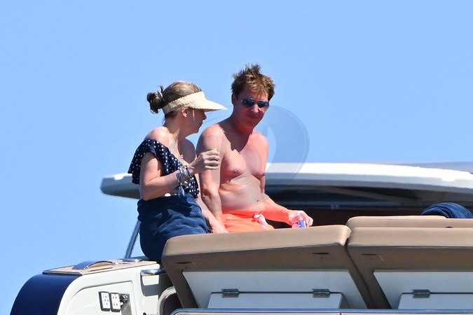 Exclusif - James Blunt, sa femme Sofia Wellesley et des amis profitent d'une belle journée à bord du yacht "Belle Jour" dans le Golfe de Saint-Tropez, Côte d'Azur, France, le 15 juillet 2024. James a profité jusqu'à 19h avant son concert à Cannes ce soir. No Web pour la Belgique et la Suisse Exclusive - For Germany Call For Price - James Blunt, his wife Sofia Wellesley and friends enjoy a lovely day aboard the yacht 'Belle Jour' in the Gulf of Saint-Tropez, French Riviera, France on July 15, 2024. James enjoyed until 7 p.m. before his concert in Cannes this evening.