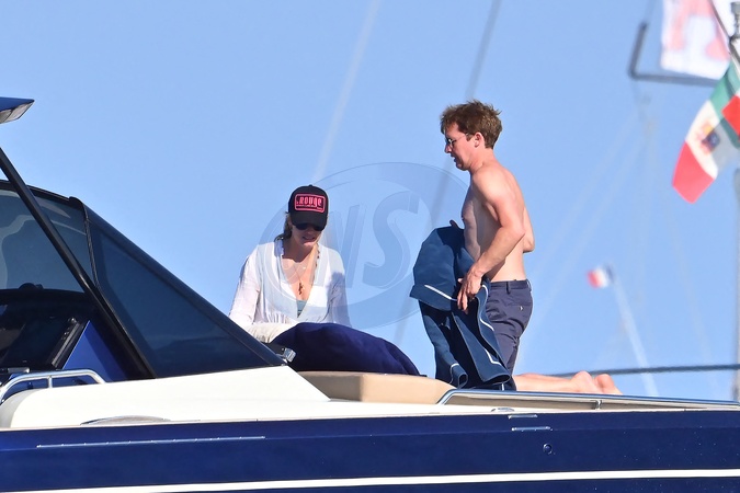 Exclusif - James Blunt, sa femme Sofia Wellesley et des amis profitent d'une belle journée à bord du yacht "Belle Jour" dans le Golfe de Saint-Tropez, Côte d'Azur, France, le 15 juillet 2024. James a profité jusqu'à 19h avant son concert à Cannes ce soir. No Web pour la Belgique et la Suisse Exclusive - For Germany Call For Price - James Blunt, his wife Sofia Wellesley and friends enjoy a lovely day aboard the yacht 'Belle Jour' in the Gulf of Saint-Tropez, French Riviera, France on July 15, 2024. James enjoyed until 7 p.m. before his concert in Cannes this evening.
