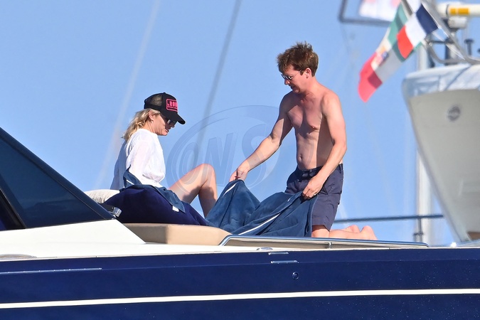 Exclusif - James Blunt, sa femme Sofia Wellesley et des amis profitent d'une belle journée à bord du yacht "Belle Jour" dans le Golfe de Saint-Tropez, Côte d'Azur, France, le 15 juillet 2024. James a profité jusqu'à 19h avant son concert à Cannes ce soir. No Web pour la Belgique et la Suisse Exclusive - For Germany Call For Price - James Blunt, his wife Sofia Wellesley and friends enjoy a lovely day aboard the yacht 'Belle Jour' in the Gulf of Saint-Tropez, French Riviera, France on July 15, 2024. James enjoyed until 7 p.m. before his concert in Cannes this evening.