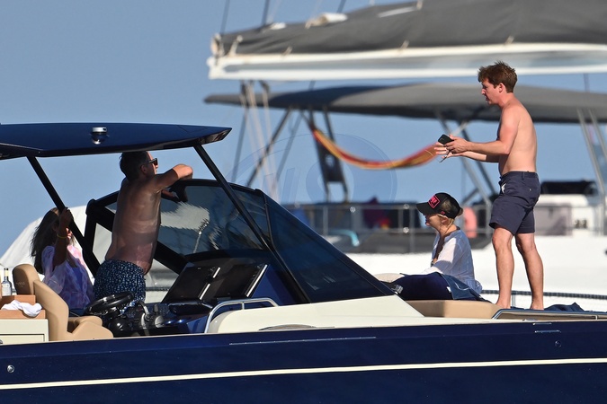 Exclusif - James Blunt, sa femme Sofia Wellesley et des amis profitent d'une belle journée à bord du yacht "Belle Jour" dans le Golfe de Saint-Tropez, Côte d'Azur, France, le 15 juillet 2024. James a profité jusqu'à 19h avant son concert à Cannes ce soir. No Web pour la Belgique et la Suisse Exclusive - For Germany Call For Price - James Blunt, his wife Sofia Wellesley and friends enjoy a lovely day aboard the yacht 'Belle Jour' in the Gulf of Saint-Tropez, French Riviera, France on July 15, 2024. James enjoyed until 7 p.m. before his concert in Cannes this evening.