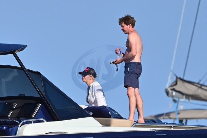 Exclusif - James Blunt, sa femme Sofia Wellesley et des amis profitent d'une belle journée à bord du yacht "Belle Jour" dans le Golfe de Saint-Tropez, Côte d'Azur, France, le 15 juillet 2024. James a profité jusqu'à 19h avant son concert à Cannes ce soir. No Web pour la Belgique et la Suisse Exclusive - For Germany Call For Price - James Blunt, his wife Sofia Wellesley and friends enjoy a lovely day aboard the yacht 'Belle Jour' in the Gulf of Saint-Tropez, French Riviera, France on July 15, 2024. James enjoyed until 7 p.m. before his concert in Cannes this evening.