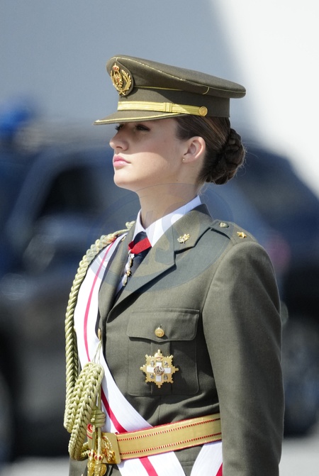 King Felipe VI (Le roi Felipe VI d'Espagne), Queen Letizia (La reine Letizia d'Espagne) and Crown Princess Leonor (La princesse Leonor) attend the delivery of Royal offices of employment at the Naval Military School on July 16, 2024 in Marin, Spain. © Lalo Yasky/Bestimage
