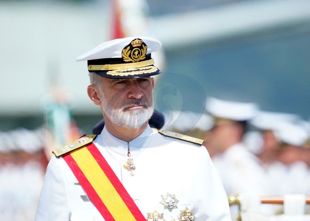 King Felipe VI (Le roi Felipe VI d'Espagne), Queen Letizia (La reine Letizia d'Espagne) and Crown Princess Leonor (La princesse Leonor) attend the delivery of Royal offices of employment at the Naval Military School on July 16, 2024 in Marin, Spain. © Lalo Yasky/Bestimage