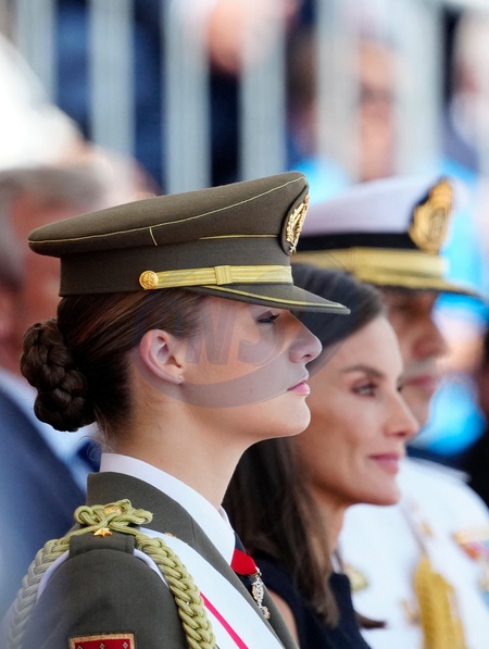 King Felipe VI (Le roi Felipe VI d'Espagne), Queen Letizia (La reine Letizia d'Espagne) and Crown Princess Leonor (La princesse Leonor) attend the delivery of Royal offices of employment at the Naval Military School on July 16, 2024 in Marin, Spain. © Lalo Yasky/Bestimage