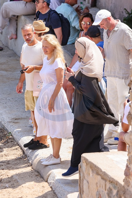 Bez makijażu i w stylu bohemy Pamela Anderson opuszcza hotel Byblos i krótki spacer po Saint-Tropez