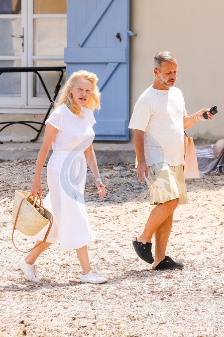 Bez makijażu i w stylu bohemy Pamela Anderson opuszcza hotel Byblos i krótki spacer po Saint-Tropez