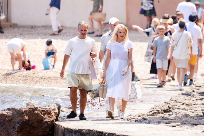 Bez makijażu i w stylu bohemy Pamela Anderson opuszcza hotel Byblos i krótki spacer po Saint-Tropez