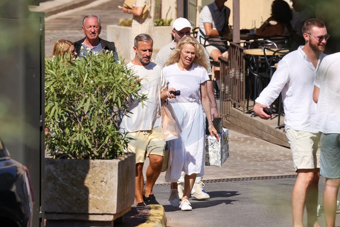 Bez makijażu i w stylu bohemy Pamela Anderson opuszcza hotel Byblos i krótki spacer po Saint-Tropez