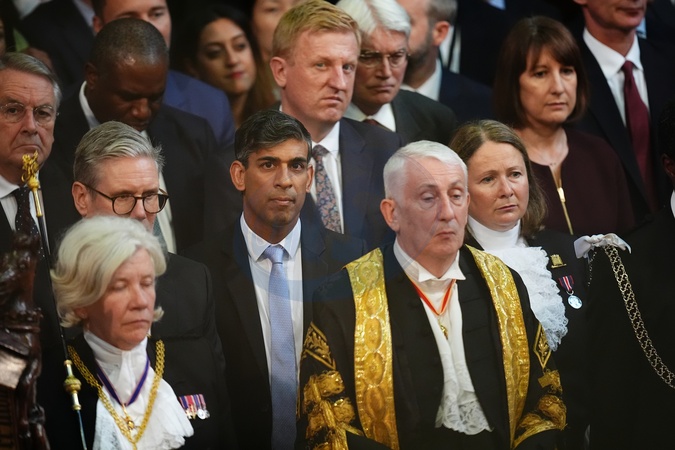 Prime Minister Sir Keir Starmer, former prime Minister Rishi Sunak and Speaker of the House of Commons Sir Lindsay Hoyle, listening to the King's Speech during the State Opening of Parliament in chamber of the House of Lords at the Palace of Westminster, London. Picture date: Wednesday July 17, 2024. PA Photo. See PA story POLITICS Speech. Photo credit should read: Aaron, Credit:Aaron Chown / Avalon