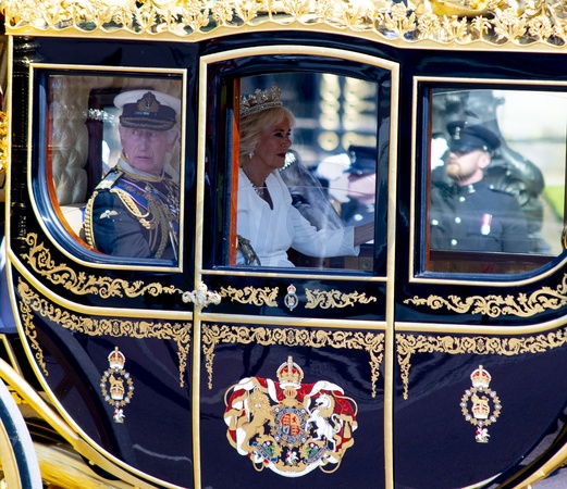 King Charles III and Queen Camilla depart Buckingham Palace in the Diamond Jubilee State Coach to attend the State Opening of Parliament in the House of Lords at the Palace of Westminster, Credit:Thepinkrosephotographyltd / Avalon