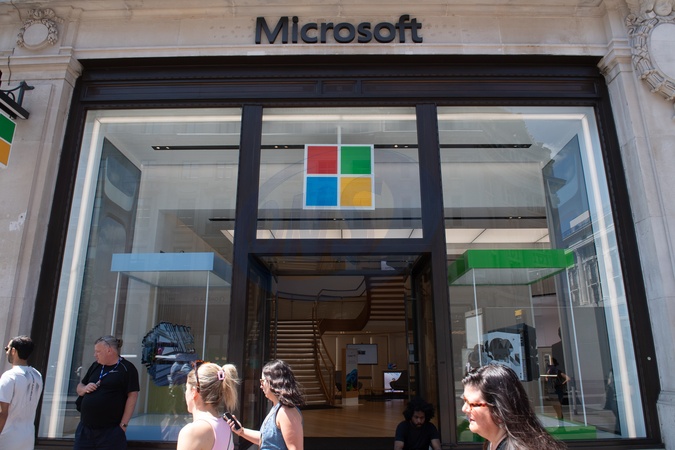 A general view of the Microsoft Store on Oxford Street, London, England, UK on Friday 19 July, 2024. American Cyber Security firm Crowdstrike has issued a statement that a faulty update in its Falcon Sensor software is causing the blue screen of death (BSOD) on Microsoft Windows Systems and rolling back the update to a previous version will fix the issue. It has affected airlines, supermarkets, transport systems all over the world., Credit:Justin Ng / Avalon