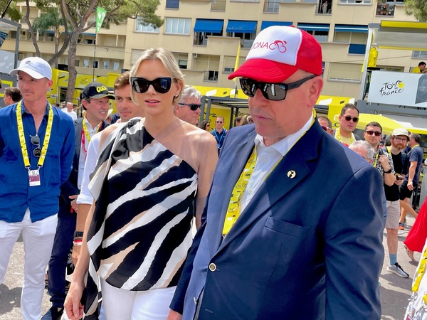 Książę Albert i księżna Charlène z Monako na starcie 20. i ostatniego etapu 111. edycji Tour de France w Monako