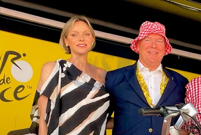 Książę Albert i księżna Charlène z Monako na starcie 20. i ostatniego etapu 111. edycji Tour de France w Monako