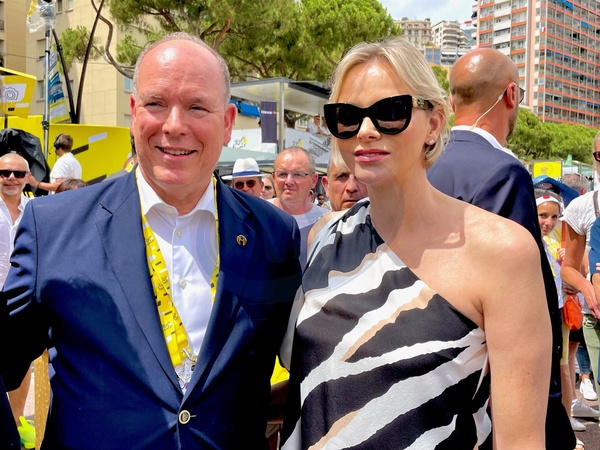 Książę Albert i księżna Charlène z Monako na starcie 20. i ostatniego etapu 111. edycji Tour de France w Monako