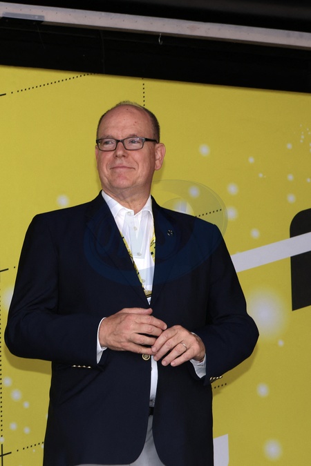 Le prince Albert II de Monaco - Le prince Albert II de Monaco et la princesse Charlene ont donné le départ de la dernière étape du Tour de France 2024, un contre la montre entre Monaco et Nice en compagnie de Christian Estrosi, le maire de Nice, sa femme, Laura Tenoudji et Christian Prudhomme, le directeur du Tour de France, le 21 juillet 2024. Ce Tour est remporté pour la troisième fois par le Slovène Tadej Pogačar, UAE Team Emirates avec une sixième victoire d'étape, en s'imposant au contre-la-montre final. © Claudia Albuquerque/Bestimage Prince Albert II of Monaco and Princess Charlene received an unusual gift: an electric Solex in the colors of the famous Cochonou brand. The brand with its red and white colors and its famous "bob" caps won over the princess, who had fun covering her husband with it in a shared fit of laughter - Prince Albert II of Monaco and Princess Charlene gave the start to the final stage of the 2024 Tour de France, a time trial between Monaco and Nice in the company of Christian Estrosi, the mayor of Nice, his wife, Laura Tenoudji and Christian Prudhomme, the director of the Tour de France, on July 21, 2024. This Tour is won for the third time by the Slovenian Tadej Pogačar, UAE Team Emirates with a sixth stage victory, by winning the final time trial.