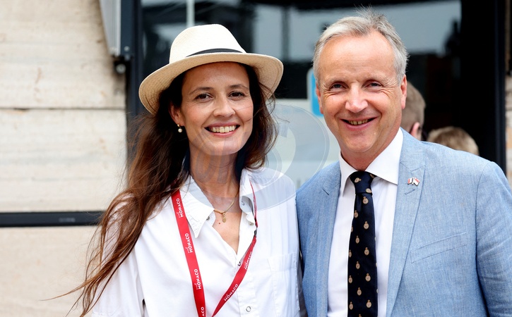 Jean d'Haussonville (Ambassadeur de France à Monaco) et sa femme - Le prince Albert II de Monaco et la princesse Charlene ont donné le départ de la dernière étape du Tour de France 2024, un contre la montre entre Monaco et Nice en compagnie de Christian Estrosi, le maire de Nice, sa femme, Laura Tenoudji et Christian Prudhomme, le directeur du Tour de France, le 21 juillet 2024. Ce Tour est remporté pour la troisième fois par le Slovène Tadej Pogačar, UAE Team Emirates avec une sixième victoire d'étape, en s'imposant au contre-la-montre final. © Claudia Albuquerque/Bestimage Prince Albert II of Monaco and Princess Charlene received an unusual gift: an electric Solex in the colors of the famous Cochonou brand. The brand with its red and white colors and its famous "bob" caps won over the princess, who had fun covering her husband with it in a shared fit of laughter - Prince Albert II of Monaco and Princess Charlene gave the start to the final stage of the 2024 Tour de France, a time trial between Monaco and Nice in the company of Christian Estrosi, the mayor of Nice, his wife, Laura Tenoudji and Christian Prudhomme, the director of the Tour de France, on July 21, 2024. This Tour is won for the third time by the Slovenian Tadej Pogačar, UAE Team Emirates with a sixth stage victory, by winning the final time trial.