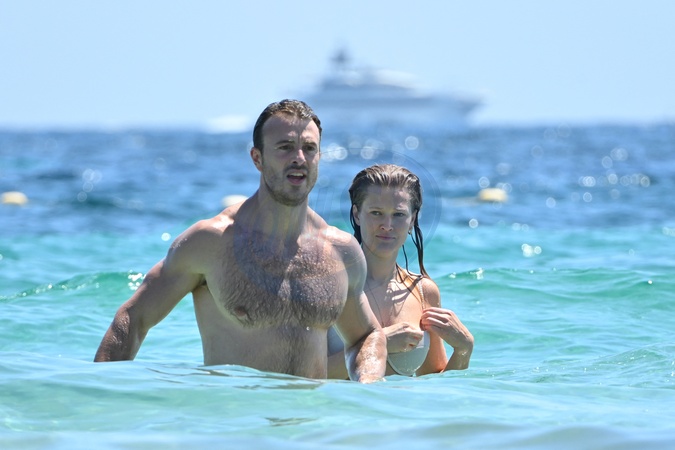 Exclusif - Prix Spécial - No Web - Toni Garrn et son nouveau compagnon Joshua Phitoussi se baignent en amoureux sur une plage de Saint-Tropez le 20 juillet 2024. Exclusive - For Germany call for price - No Web - Toni Garrn and her new companion Joshua Phitoussi take a romantic swim on a beach in Saint-Tropez on July 20, 2024.