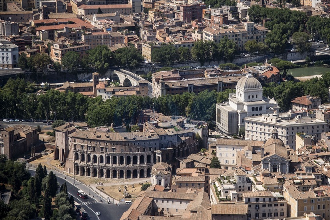 Rome: Helicopter flight over the capital. Teatro di Marcello and Synagogue, Credit:Alessandro Serran˜ / Avalon