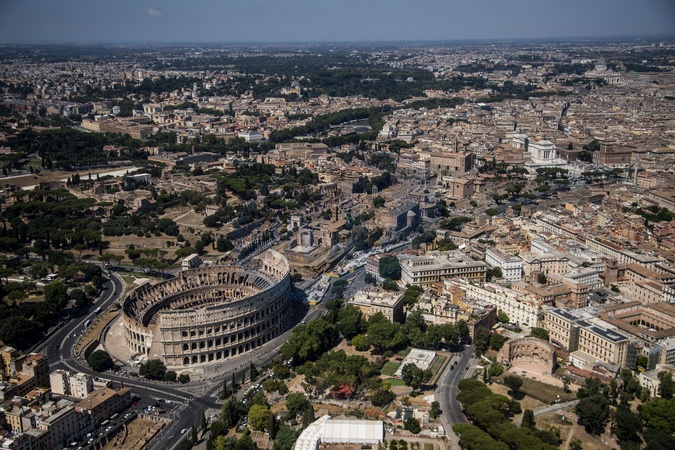Rome: Helicopter flight over the capital. Colosseo and Foro Romano, Credit:Alessandro Serran˜ / Avalon