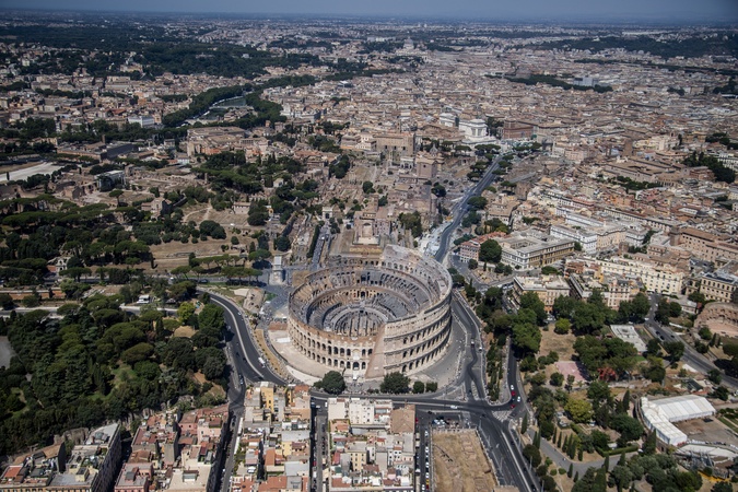 Rome: Helicopter flight over the capital. Colosseo and Foro Romano, Credit:Alessandro Serran˜ / Avalon