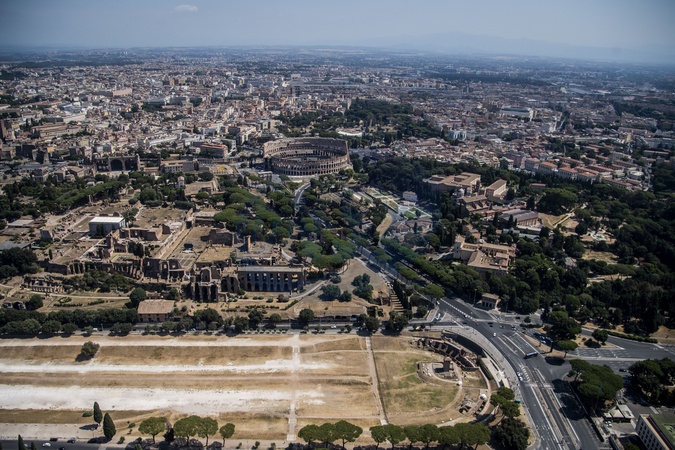 Rome: Helicopter flight over the capital. Colosseo, Palatino and Circo Massimo, Credit:Alessandro Serran˜ / Avalon