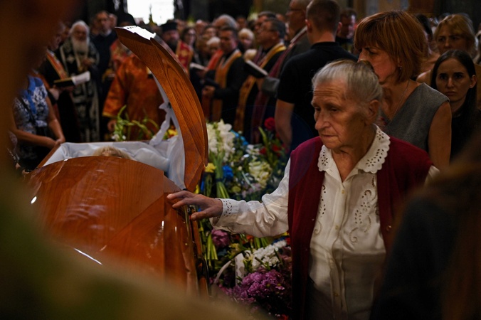 LVIV, UKRAINE - JULY 21, 2024 - People pay their last respects to linguistic professor and former MP Iryna Farion, who was shot dead on the street on July 19, during the memorial service at the Saints Peter and Paul Garrison Church, Lviv, western Ukraine., Credit:Anastasiia Smolienko / Avalon