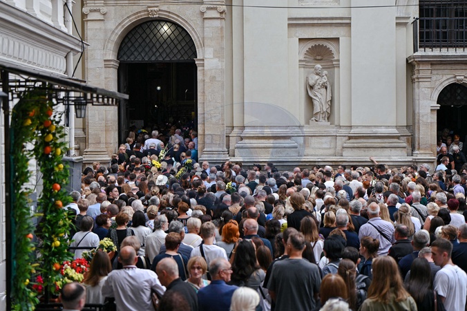 LVIV, UKRAINE - JULY 21, 2024 - Crowds gather to attend the memorial service for linguistic professor and former MP Iryna Farion, who was shot dead on the street on July 19, at the Saints Peter and Paul Garrison Church, Lviv, western Ukraine., Credit:Anastasiia Smolienko / Avalon